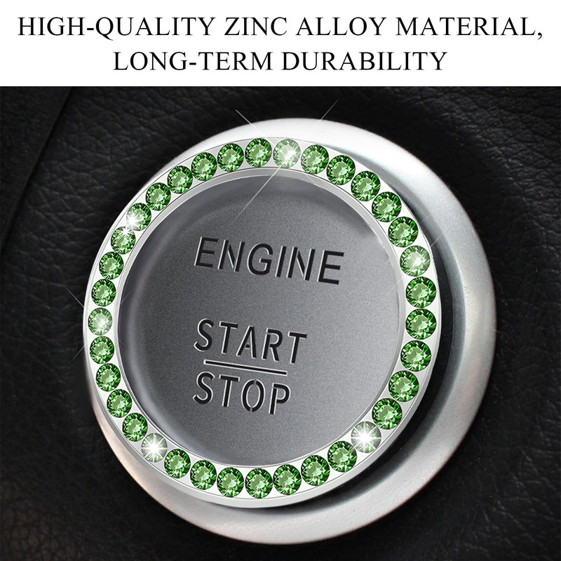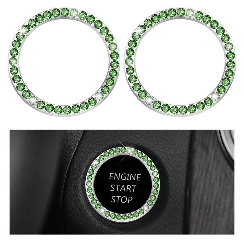 JUSTTOP 2PCS Car Bling Crystal Rhinestone Engine Start Ring Decals, Auto Start Engine Sparkling Key Ignition Knob Sticker, Push Start Button Cover Crystal Bling Ring Emblem Decor (Singe, Green)