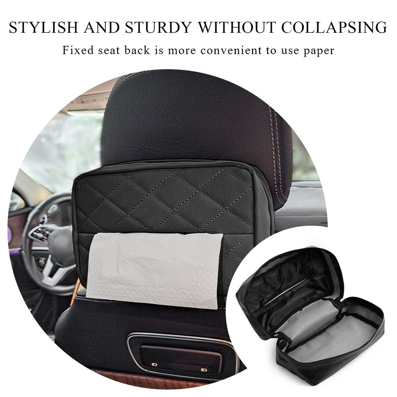 - 【Practical Function】: Mounted on the back of your headrest, the tissue holder utilizes space efficiently while providing easy access to tissues. You'll no longer need to dig through bags or glove compartments, as it keeps everything organized and readily available, ensuring your car remains tidy.
