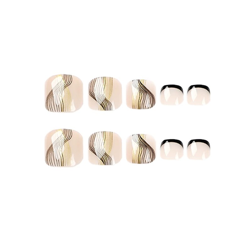 JUSTUSNX 24pcs Square French Nude Fake Toenails Black Edge Golden Line False Toenails Black and White Contrast Press on Toenails for Women and Girls (A)