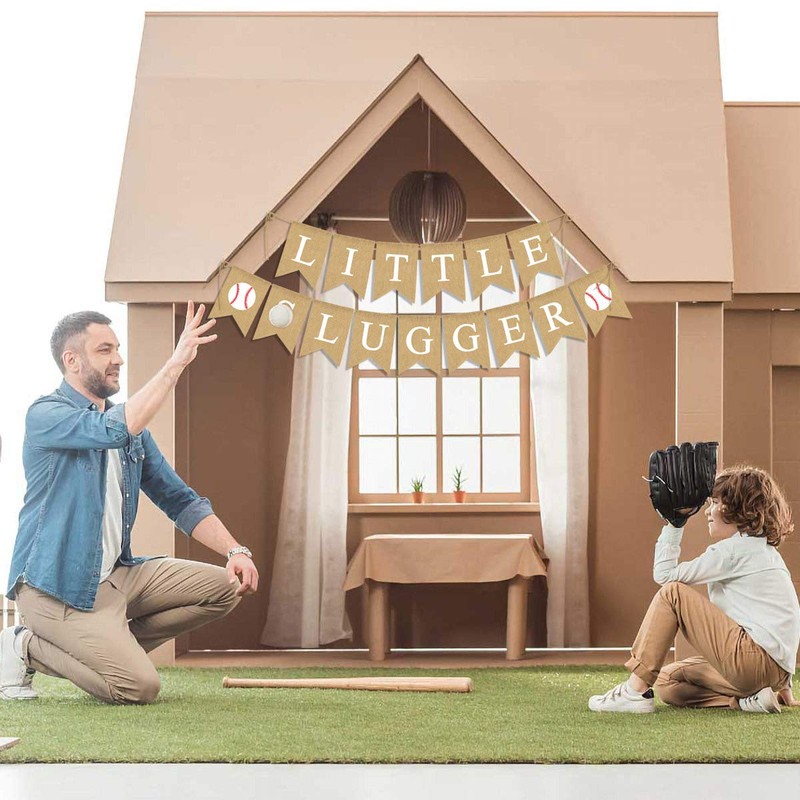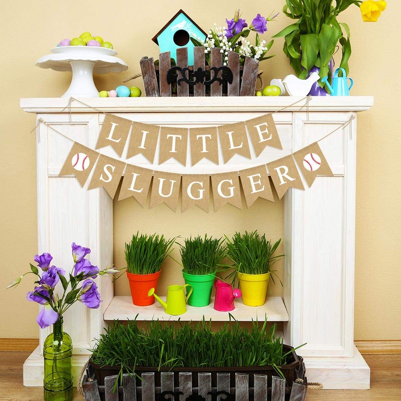 Jute Burlap Little Slugger Banner Boy Baseball Theme Baby Shower Party Decoration Supply