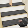 Jute Stair Carpet Treads Non Slip with Rubber Backed,15Pcs Black Stair Mats Stair Protectors for Carpeted Stairs, Easy Clean Indoor Basement Safety Stick On Stair Treads Carpet, 30"X8"