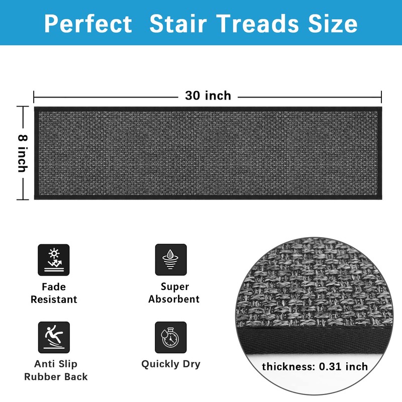 - ?? Rubber Backing: Bottom are taking the TP Rubber backing of stair rugs can keep you stay in the place for your foots be firmly attached to the ground whether there is much dust or water underneath it, for we take the rubber tyres of cars, which has a strong adsorption to the ground, also staircase carpets for stair is a great ideal gift for family.