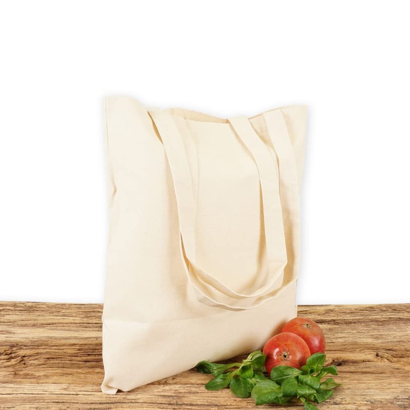 The classic cotton bag made from solid 180 GSM recycled cotton in natural colours with long carrying handles in a set of 3. Small to pack and therefore practical anytime and anywhere.