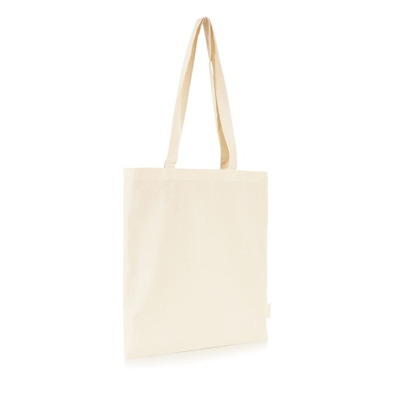• Details: 38 x 42 cm, 70 x 2.5 cm flat comfort cotton carrying handles, recycled cotton