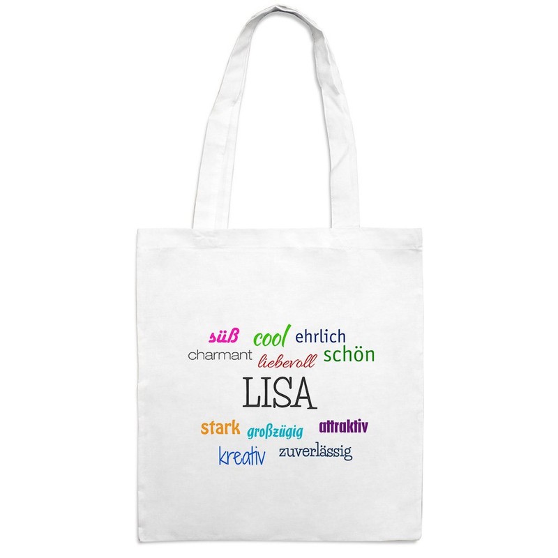Jutebeutel mit Namen Lisa - Motiv Positive Eigenschaften - Farbe weiß – Stoffbeutel, Jutesack, Hipster, Beutel