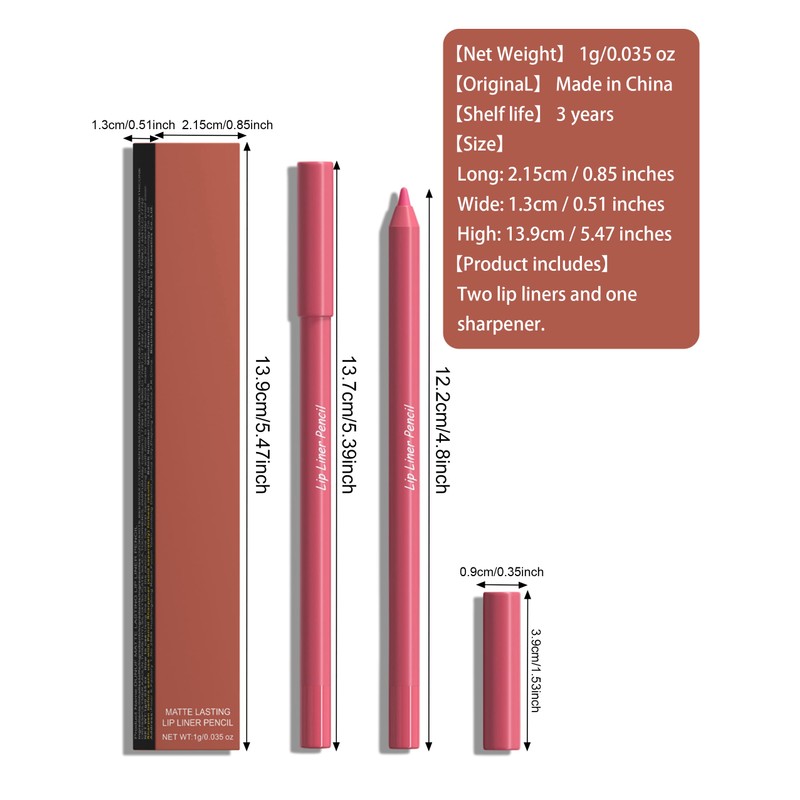 - 5.Sharpener included for easy sharpening: each lip liner comes with a handy sharpener, so you can sharpen the pen at any time to draw precise and even lines.