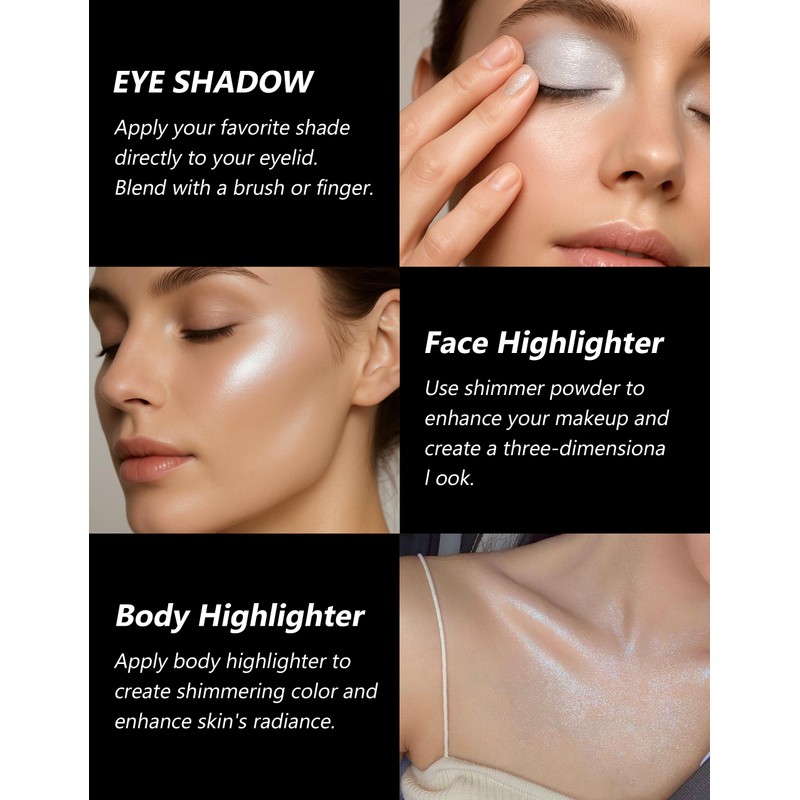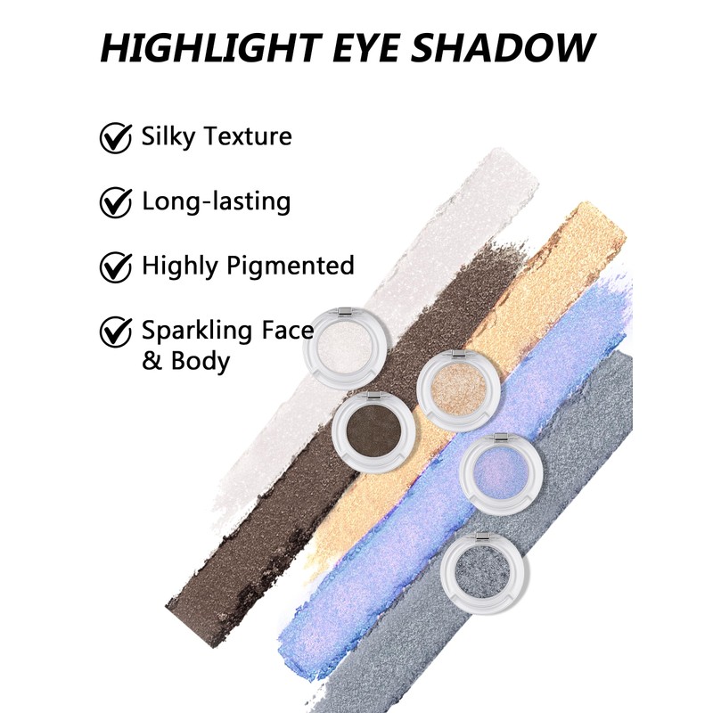 • Versatile Multi-Use:Works for eyes, brow bones, and collarbones. 5 shades fit every need—daily eye makeup, party highlight, or festival sparkle. Mix and match for endless styles