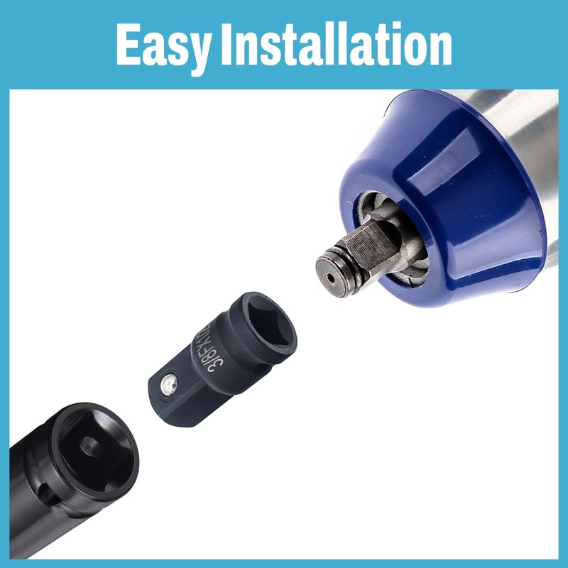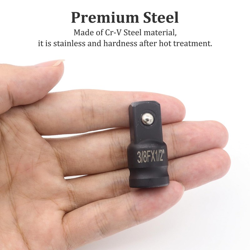 - Durable and Hard - The 3/8 to 1/2 inch reducer adapter is forged by Chrome Vanadium (CV) Steel material through heat-treated, which can reduce corrosion and has ultra-high hardness. The high density thickness withstands higher torque from impact tools and prevents breakage.