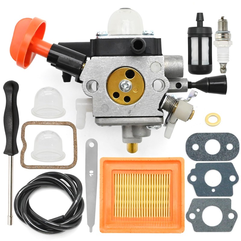 - Package including: 1 x Carburetor; 1 x Air Filter; 1 x Fuel Line; 1 x Spark Plug; 1 x Fuel Filter; 2 x Primer Bulb; 3 x Gaskets and others as show as picture