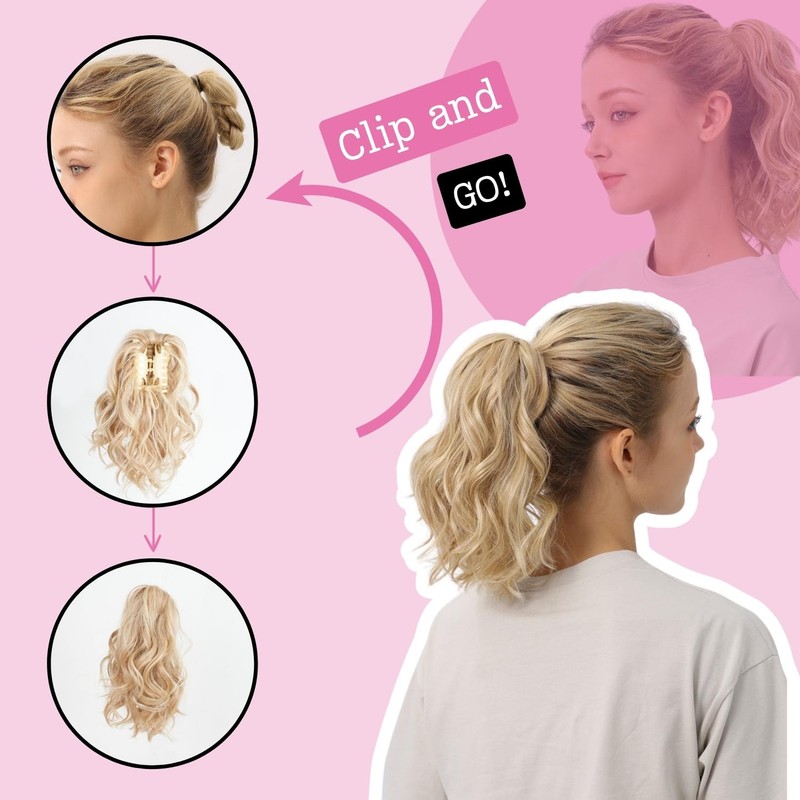 - GORGEOUS LOOKING JUVABUN BEACH WAVES PONYTAIL : Transform your hairstyle instantly with Juvabun 10-inch ponytail extension featuring a claw clip. Achieve a naturally curly texture that exudes elegance. Soft synthetic fibers ensure a lifelike appearance, making it a must-have for any occasion.