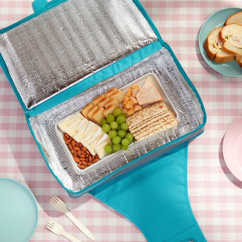 • Warming Container for Food: This teal and gray casserole carrying case features a top closure for easy access to your meals and a sturdy handle for effortless transportation