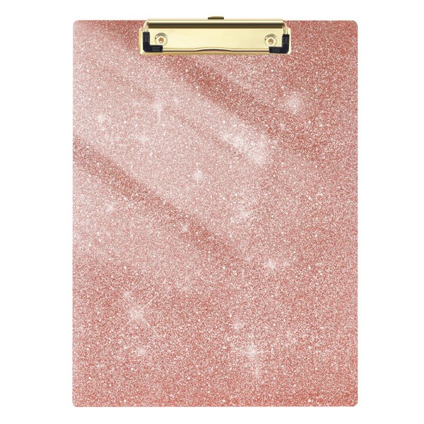 Juvealoe Acrylic Glitter Clipboard, 8.5 x 11 Sparkly Clip Board with Low Profile Gold Clip, Suitable for Classroom School and Office, Desk Accessories, Pink