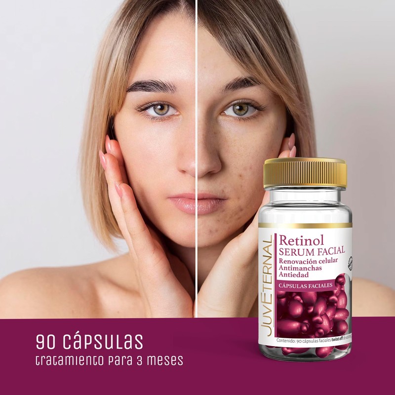 Juveternal Duo Cápsulas Faciales Retinol Cápsulas Faciales Vitamina C 90 caps c/u Renovación celular Antimanchas Antiedad Desestresa la piel Antioxidante