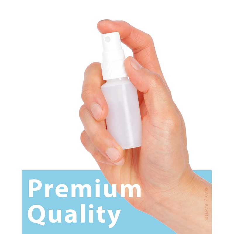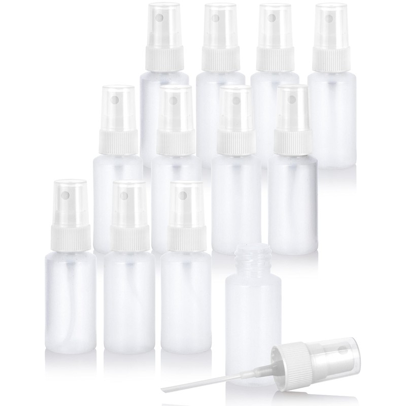 JUVITUS 1 oz / 30 ml Clear Natural Plastic HDPE Refillable Cylinder Squeeze Bottle with White Fine Mist Spray (12 Pack)