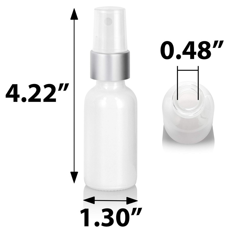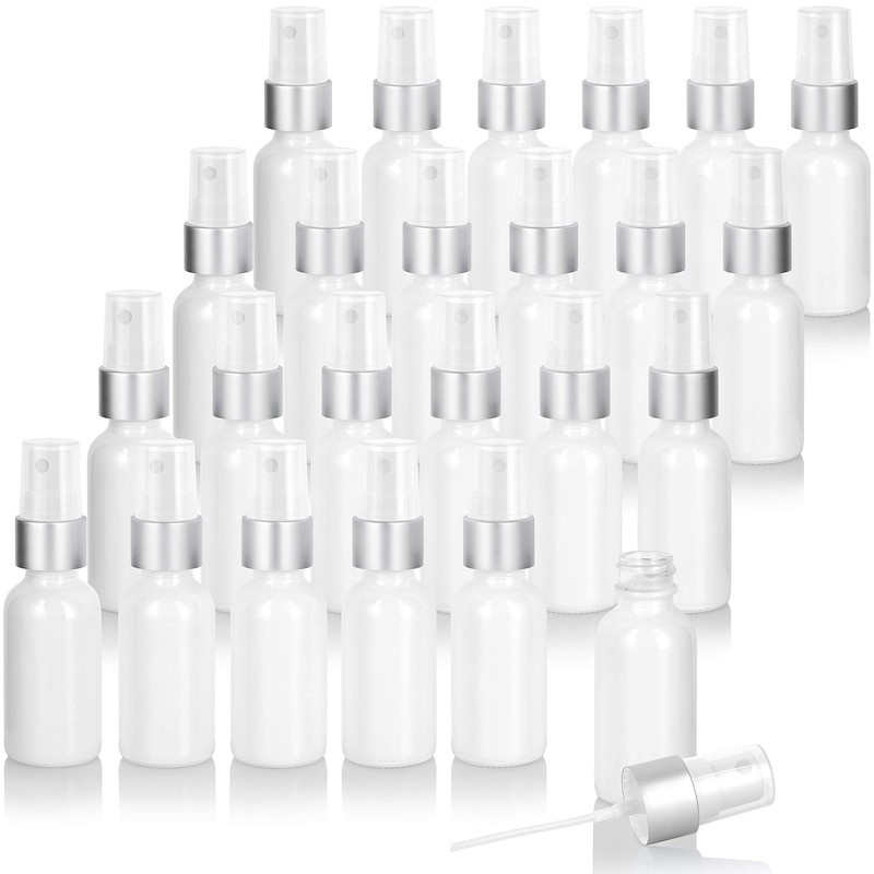 JUVITUS 1 oz / 30 ml High Shine Gloss White Glass Boston Round Bottle with Silver and White Fine Mist Spray (24 Pack)