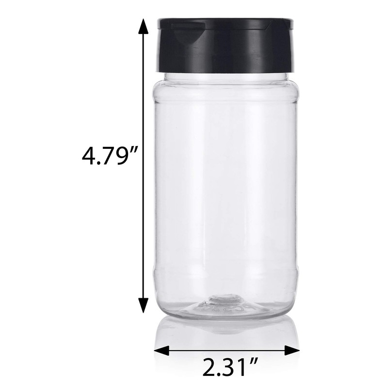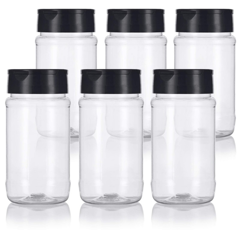 JUVITUS 8 oz/ 225 grams Clear PET Plastic Spice Bottle with Black Sifter (6 pack), for spices, salts, powders, and any sift-able products.