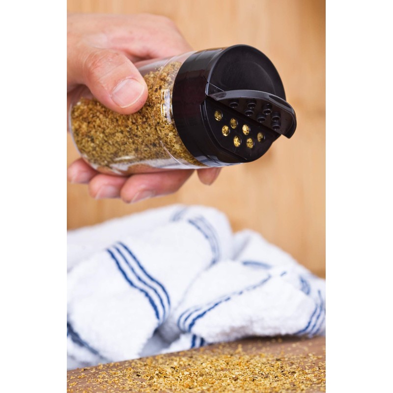 - Sifter Cap includes a heat induction, tamper evident, freshness seal and two sides, One side with 7 standard shaker holes, the other with a half moon pour opening good for pouring different spices, salts, herbs, powders, and any sift-able products for kitchen or personal care use.