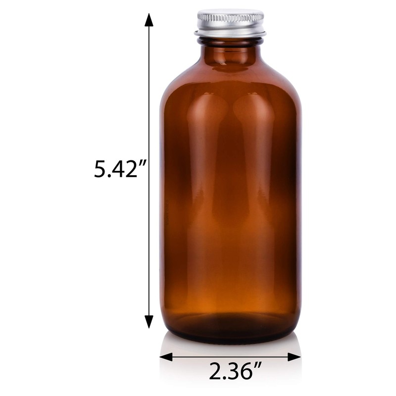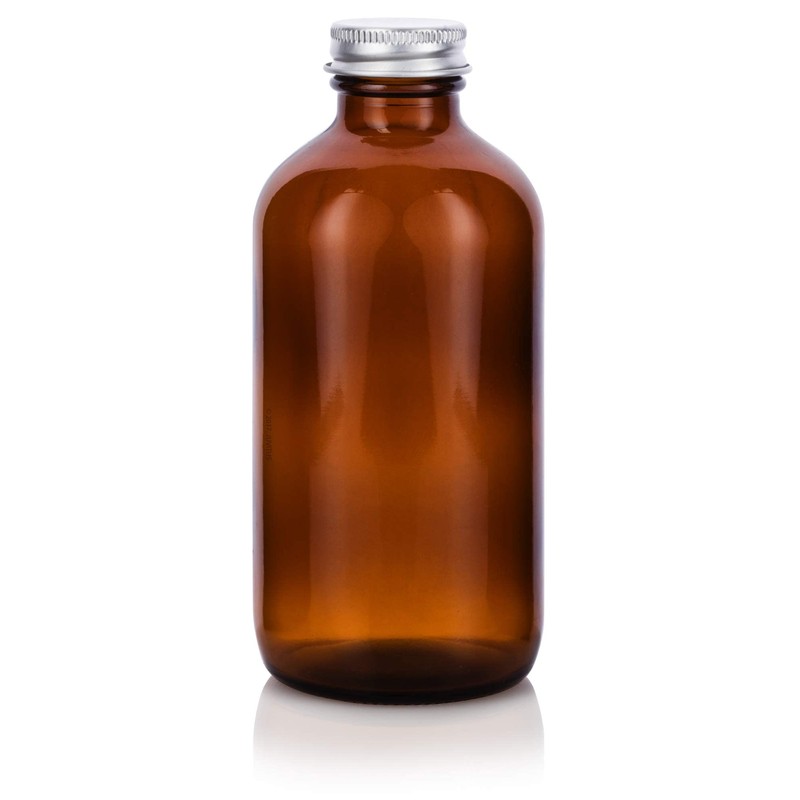 JUVITUS 8 oz Amber Glass Boston Round Bottle with Silver Metal Screw On Cap (4 Pack) Refillable Empty Storage Containers