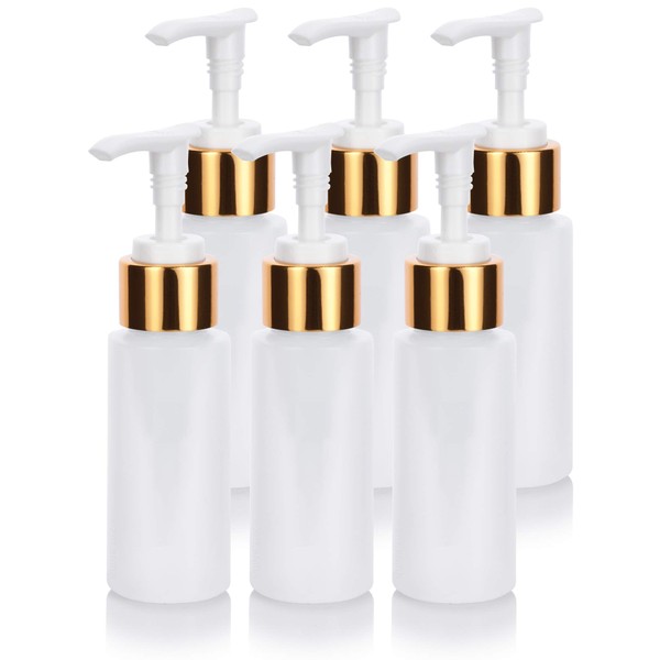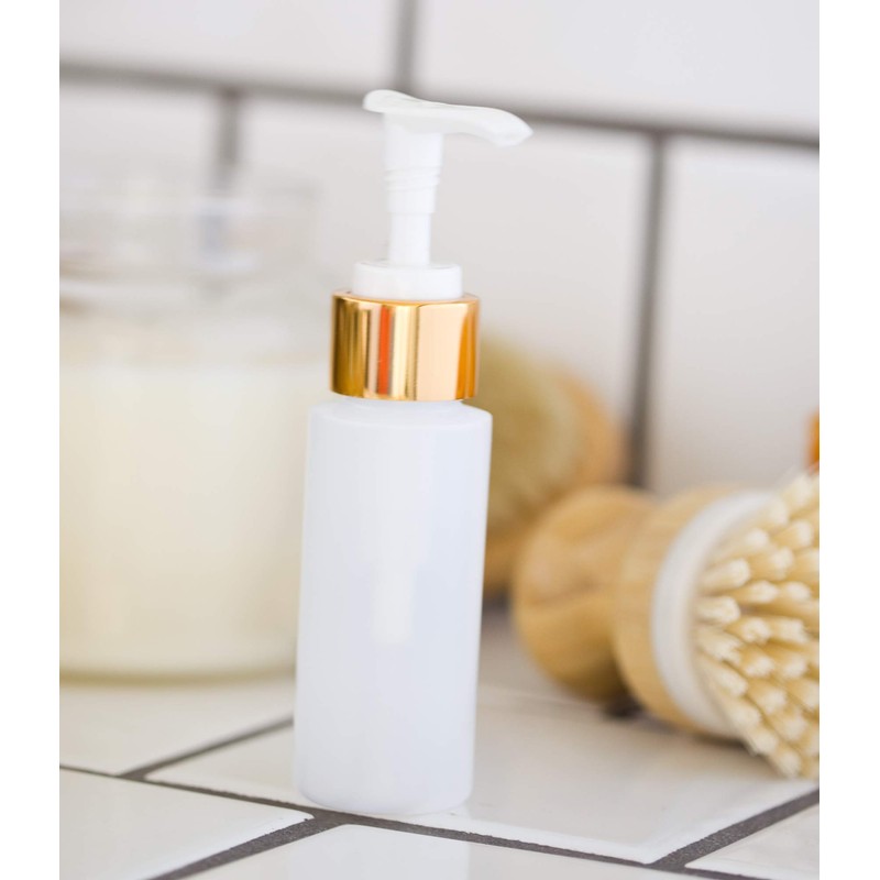 Measurements: Height - 5.12" x Diameter - 1.37". HDPE plastic bottles are impact resistant, lightweight, versatile and ideal for a multitude of different beauty, household, kitchen, and scientific lab uses. Our refillable bottles are easy to clean, reuse, and recycle. Our gold lotion pump closures lend an upscale, professional look and feel to your products. Great for business resell or for gifts! Please note: HDPE bottles are NOT dishwasher safe. Please hand wash to preserve the shape and integrity of the bottle.