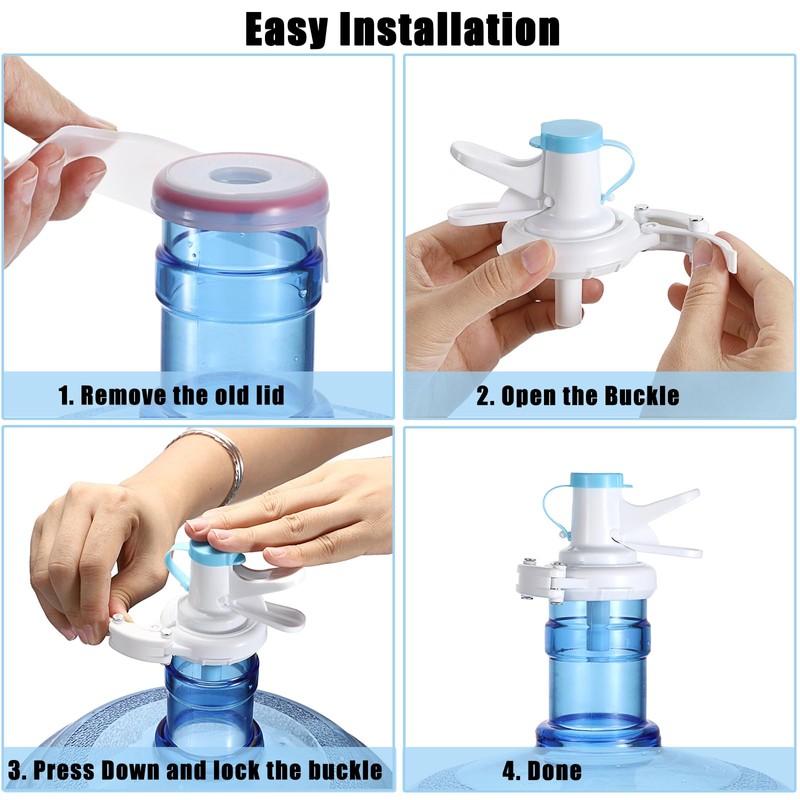 - These water jug dispenser nozzles is easy to install, just simply press and snap on the buckle. These pop right off due to a unique locking design feature with easy release. Smooth flow and no leaks