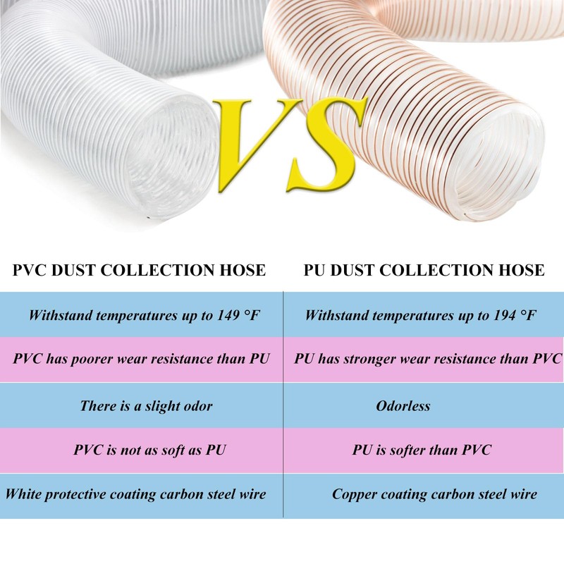 • This PU dust collection hose is constructed of heavy-duty clear PU material to withstand constant suction pressure and debris impact for long-lasting use.