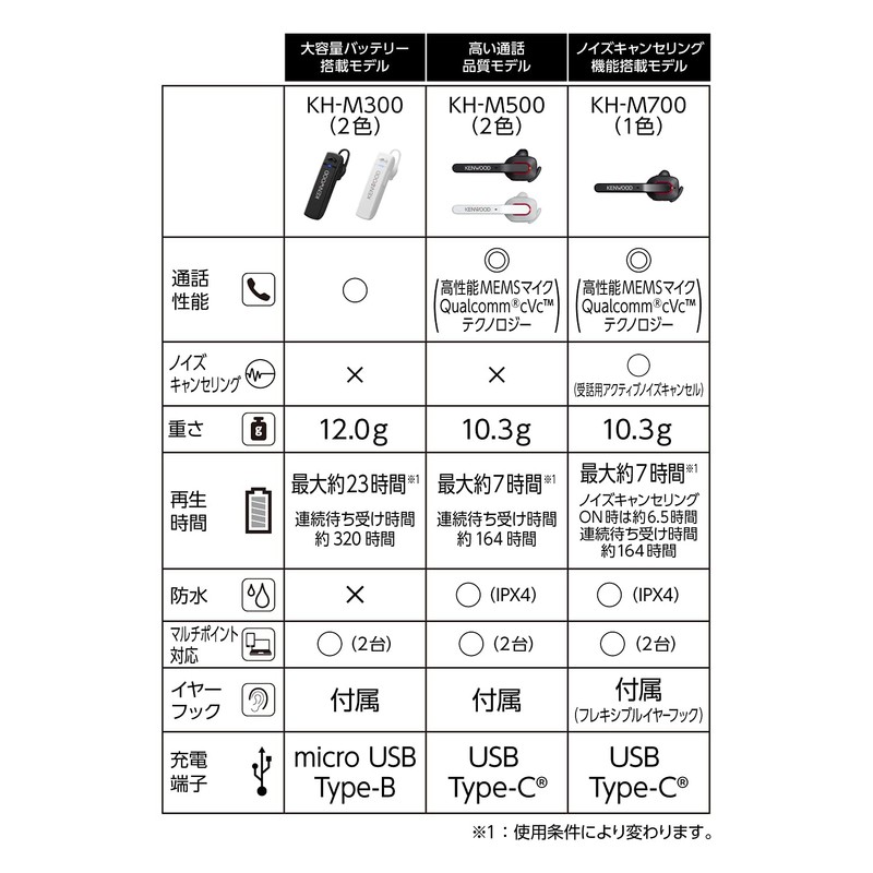 JVCKENWOOD KH-M300-B Single Ear Headset, Bluetooth Compatible, Continuous Talk Time: Approx. 23 hours, Left and Right Ear, For Telework and Video Conferencing, Black
