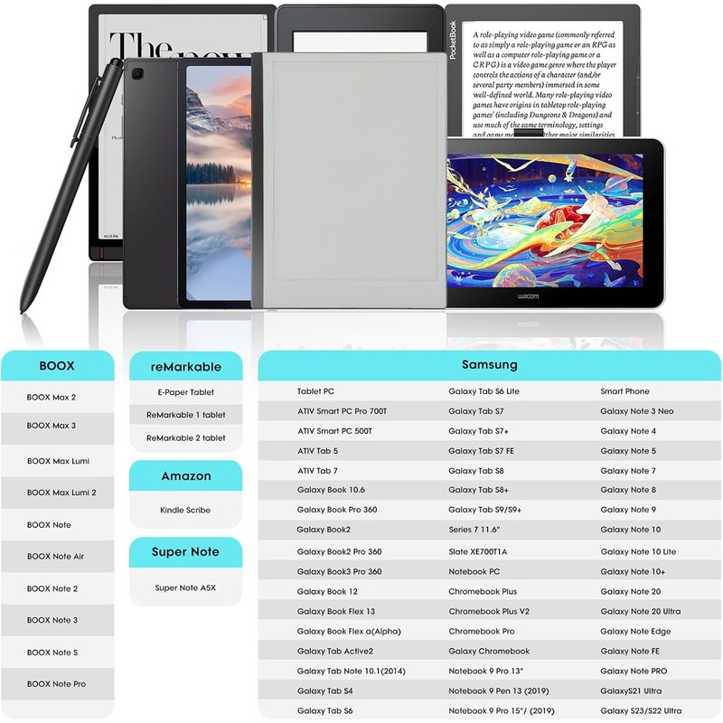 - Wide Compatibility: Our stylus for EMR is designed to be compatible with a wide range of EMR devices and tablets, including Remarkable 2, Samsung tablets, and Wacom devices. Not compatible with Apple (iOS), Android, Remarkable Paper Pro, Remarkable Pro, or Windows systems. (Please check the image list before purchasing.)