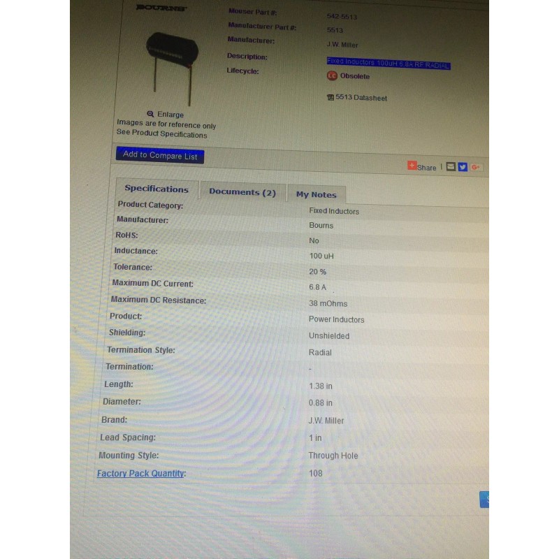 JW MILLER 2x 5513 JW MILLER FIXED INDUCTOR 100uH 6.8A RF RADIAL CHOKE 100UH 10%