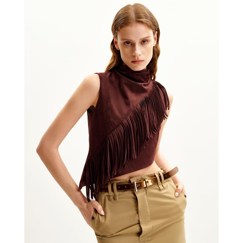 JW PEI Women's Adeline Asymmetric Fringe Sueded Top - Burgundy