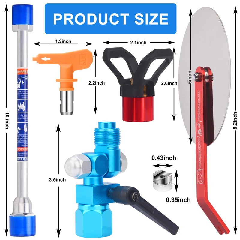 - Five ✅【Product Packaging】:Airless spray guide 120025 include 1 spray guide, one 517 tip and one 10 inch airless Extension Pole.