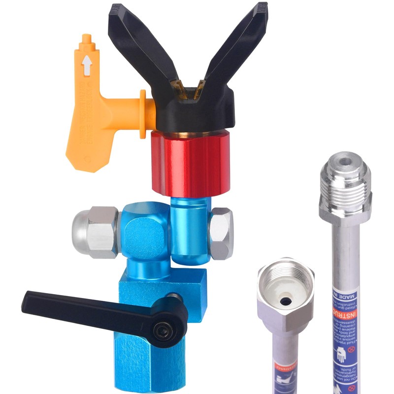 - Four ✅【Easy to Install and Use】: First insert the tip seal into the nozzle seat,then put the 517 tip into the protective base,and finally rotate and secure spray tip.Airless spray guide tool made of aluminum,Lightweight,the tool reduces user fatigue during prolonged use.