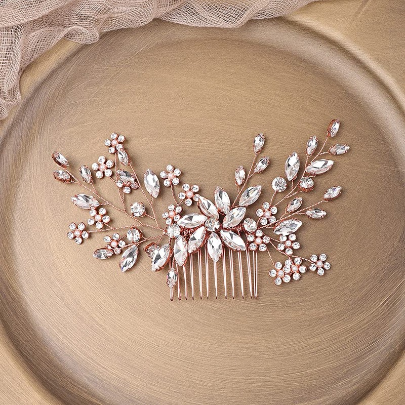 - ❤Materiales: delicado peine de pelo hecho de aleación, alambre, cuentas, perlas de imitación, cristal y diamantes de imitación