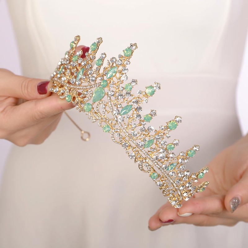 - Material: aleación dura duradera, diamantes de imitación y vidrio. La aleación tiene un aspecto de diamante y una textura dura para practicidad y estética. La corona de la tiara es ligera y no hay sensación de peso en la cabeza después de usar la corona.