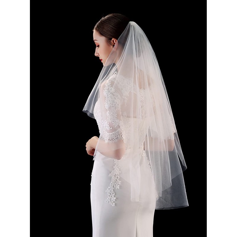 - 2 tier, wedding veils is easy to attach to the hair through ab