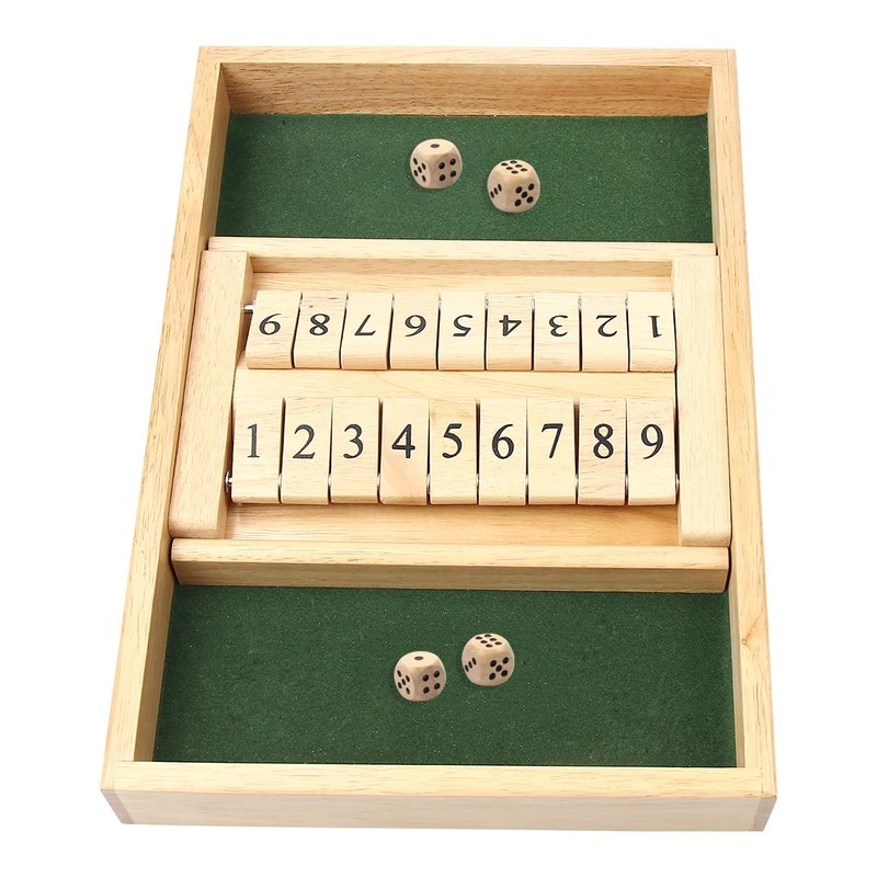 Jwinkumy Shut The Box Game, Wooden Double-Sided 9-Number Dice Game for 2 Players, Classic Tabletop Dice Game, Fun and Educational Party Game
