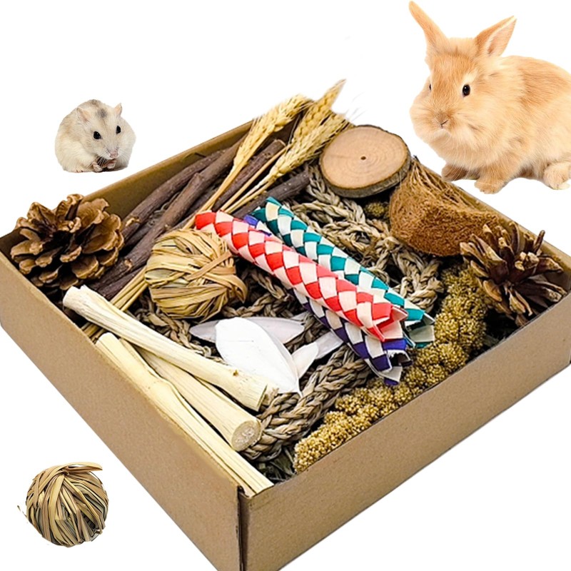 - 【Healthy Growth】Rodent pets need to grind their teeth to keep them healthy. Rabbit toys box serves as a durable teething toy to help improve digestion and keep your pet healthy.