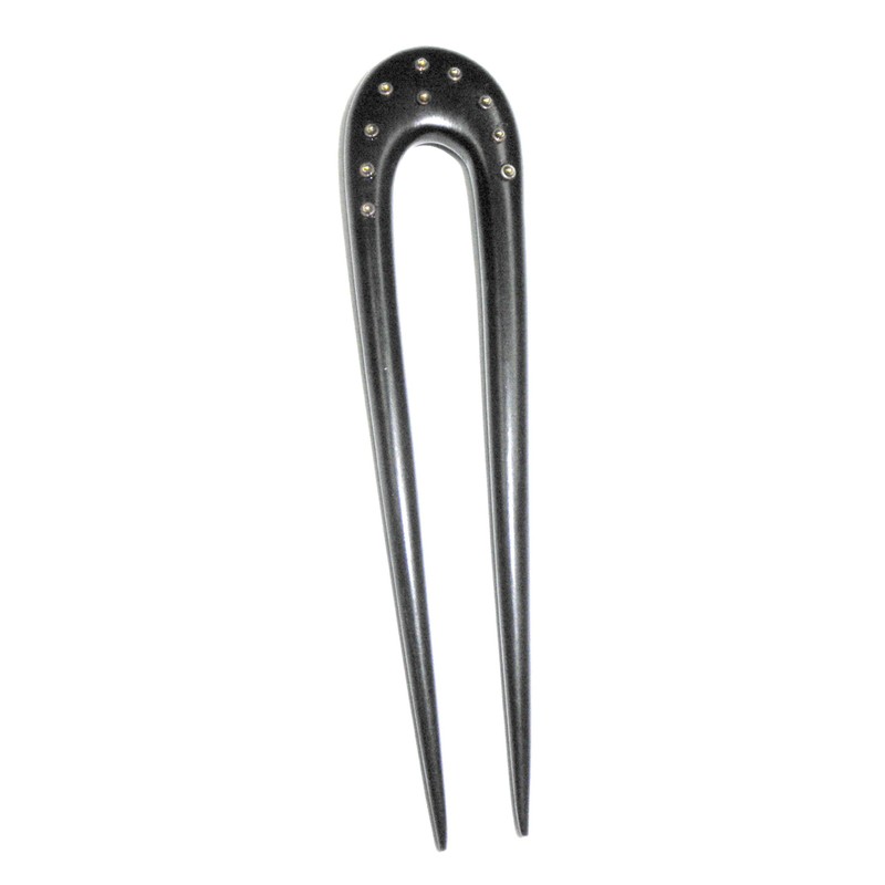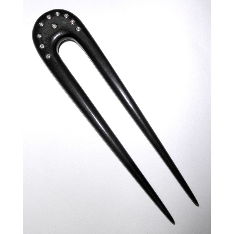 JWL (1) Ebony 2-Prong 4 5/8 Inch Hair Stick with Nickle Silver Wire Pin Inserts Pick Pic Pin Fork - Hawaiian Style