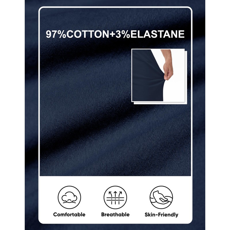 - 【Coton Chino】: The type of fabric doesn't wrinkle easily, very stretchy and give your plenty of room to move without feeling tight or restrictive.The material is lightweight enough to be comfortable in warm weather.