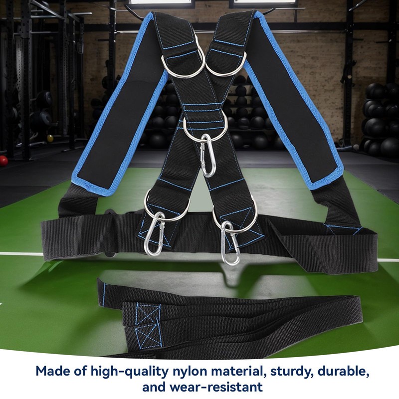 - MATERIAL: Speed strength training sled shoulder harness is crafted from nylon material, sled pulling harness offering sturdiness and wear resistance. The pulling belt is long enough to provide plenty of room and the best angle to exercise resistance training efficiently
