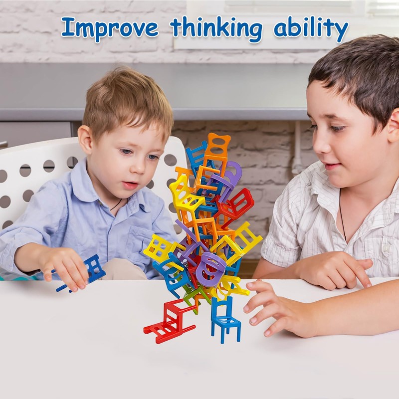 - Interactive family game: stacking chair game is ideal for children to play with their families. Each person can choose a chair in a different colour to avoid confusion. Who manages to stack the highest tower or knock over each other's creations? Mini chair balance will surely please the little ones and are ideal for the whole family to have fun together.