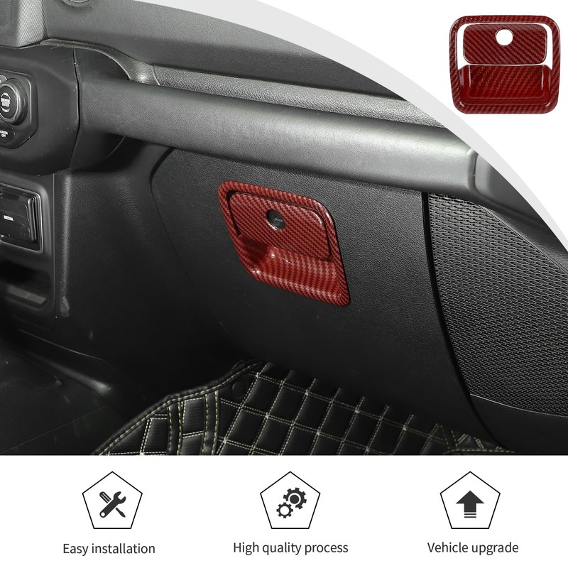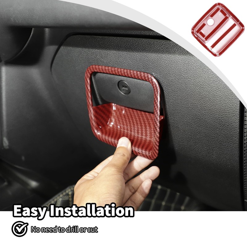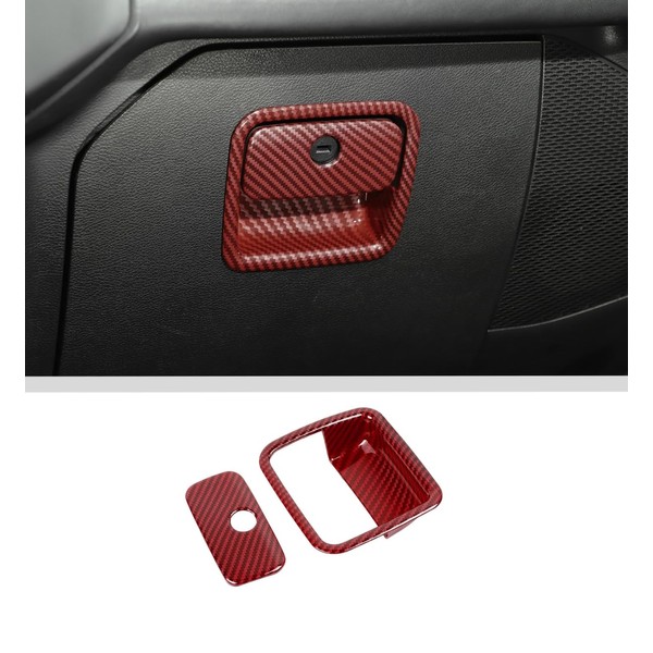 JWWY Glove Box Handle Trim Cover for Jeep Wrangler JL 2018-2025, Interior Decorative Accent for Passenger Side Glove Compartment, ABS 2pcs Red Carbon Fiber