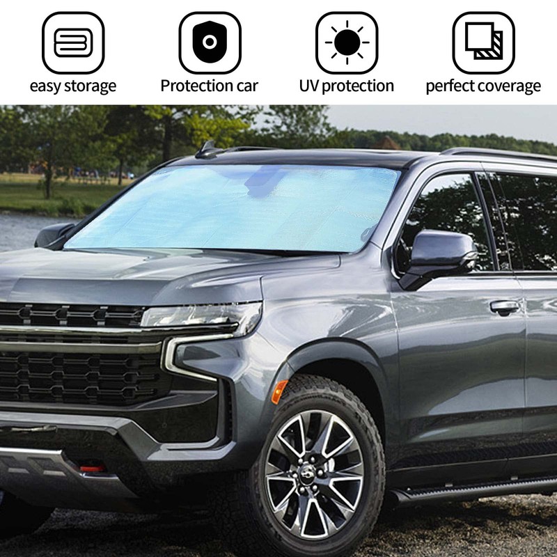- CUSTOM FIT:Windshield Sunshade Window Sun Shade for Chevy Tahoe 2021-2024+,2020-2024+ Chevy Suburban Foldable Sun Shield Upgrade Reflective Polyester Cover Block Heat and Block UV Rays