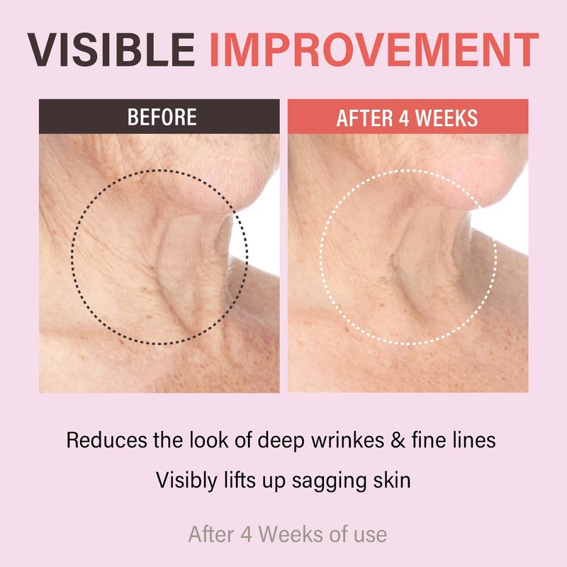 - Visible Improvement in 4 Weeks:The advanced mixture of retinol and low-molecule-weight collagen in this neck cream helps to promote cell regeneration and enhance collagen production, effectively minimizing the appearance of deep and fine wrinkles.