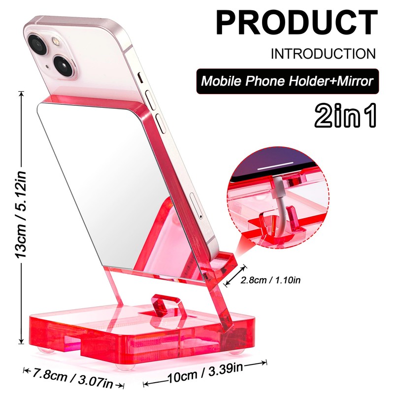 JxgZanthous Removable Acrylic Desktop Cell Phone Holder with Flat Mirror (Pink)