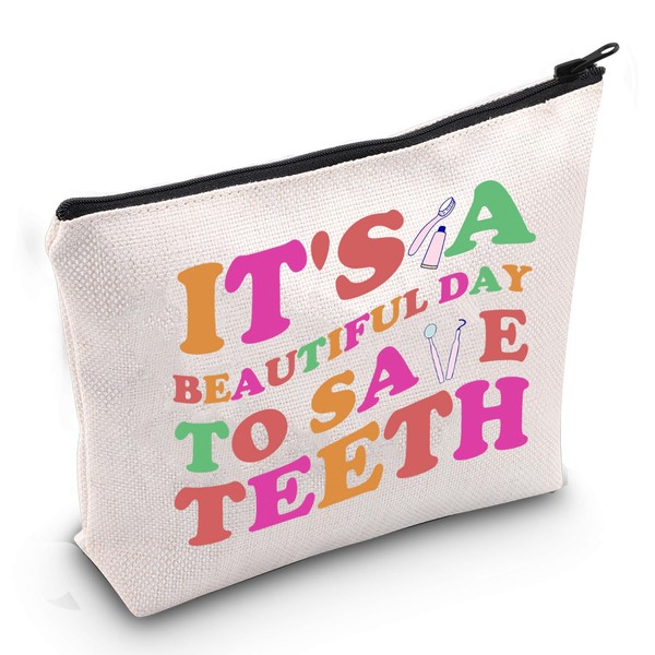 JXGZSO Funny Dentist Zipper Pouch Bag It's a Beautiful Day To Save Teeth Makeup Bag Dental Gift Dental Student Gift (Save Teeth Bag)