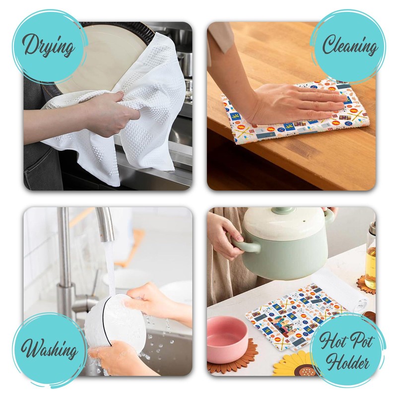 Perfect for daily hand drying, washing dishes or utensils, windows cleaning, sopping up a quick mess, cleaning counter tops,