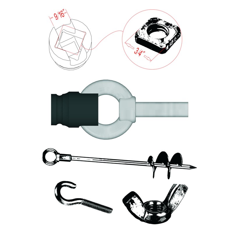 - 9/16" Slot for Eye Bolt / J-hooks / Hot-line Clamps / Grounding-Clamps / Earth anchors