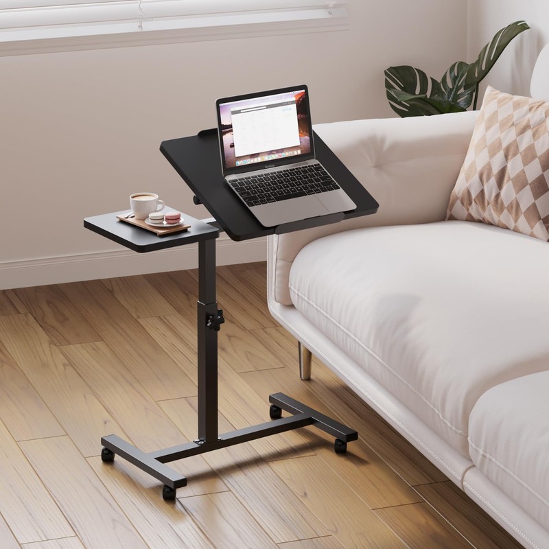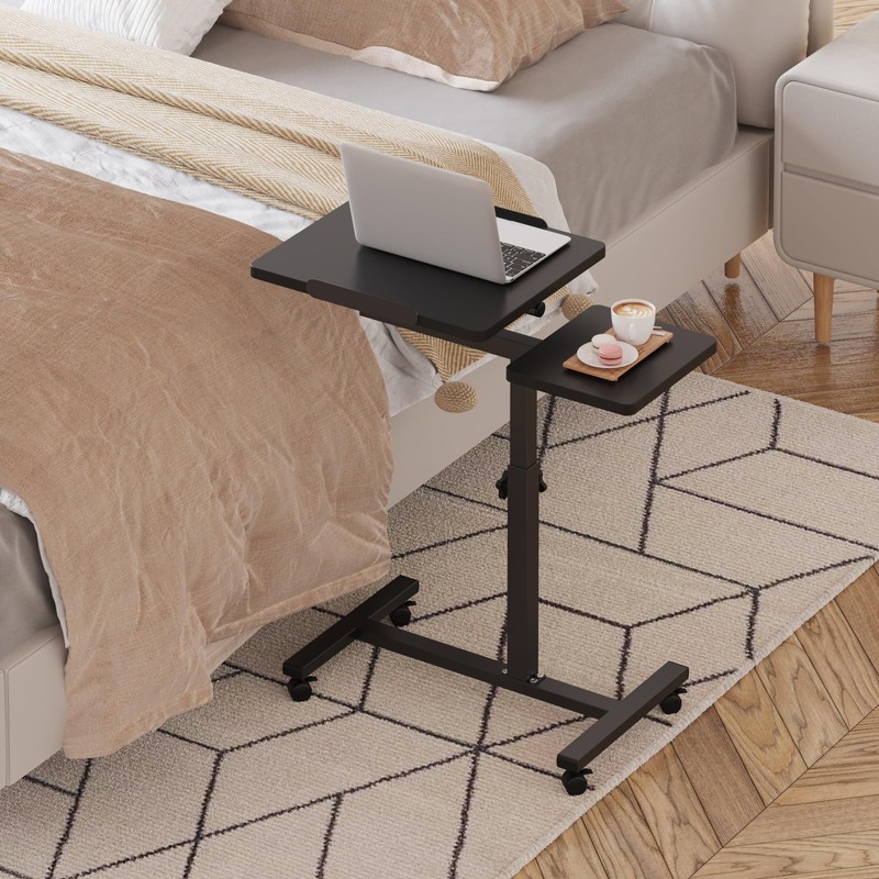 JXINONT Medical Overbed Tables Mobile Adjustable Rolling Laptop Stand Computer Workstation Desk Home&Office&Hospital, w/Wheels, Tilt w/Side Table(New Model), Black