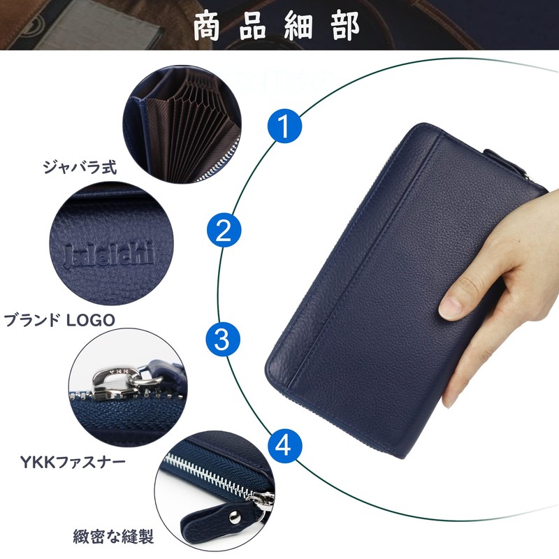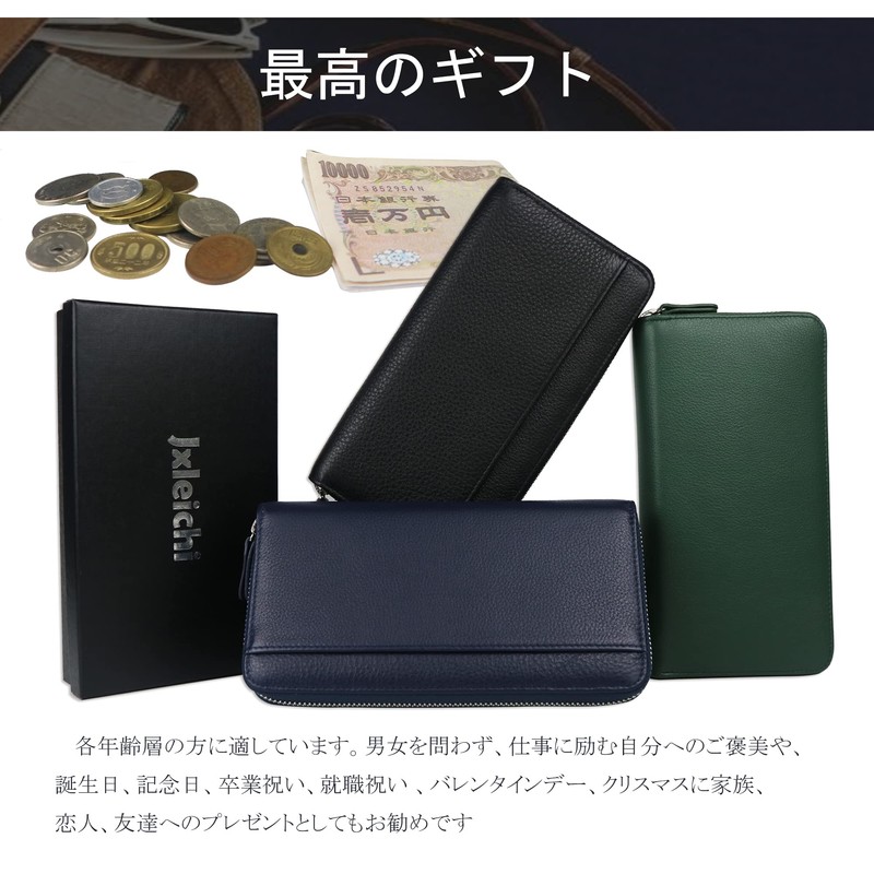 Jxleichi Clutch Wallet, Card Case, Genuine Leather, Zip-Around, Large Capacity, Can Hold 25 Cards, Magnetic Skimming Prevention, Bill Holder, Coin Purse, 7.9 x 4.3 x 1.2 Inches (20 x 10.8 x 3 cm)