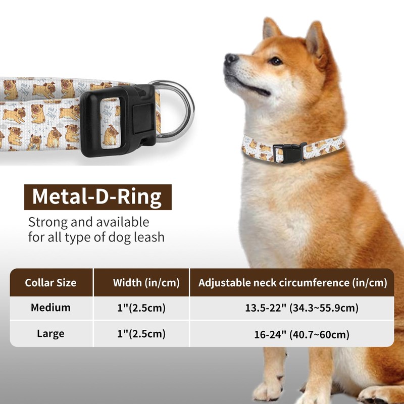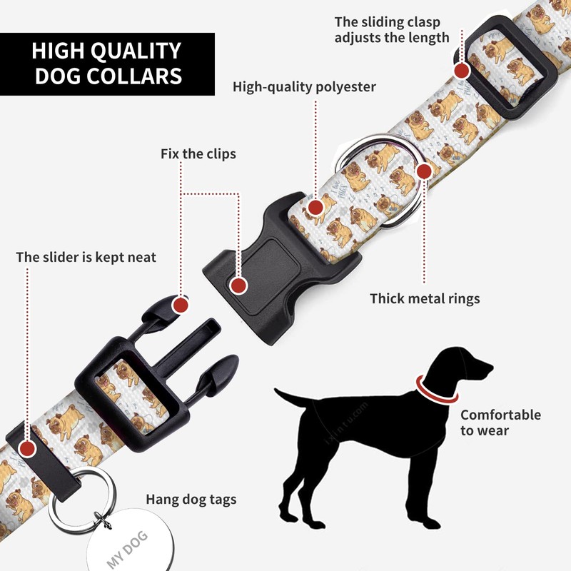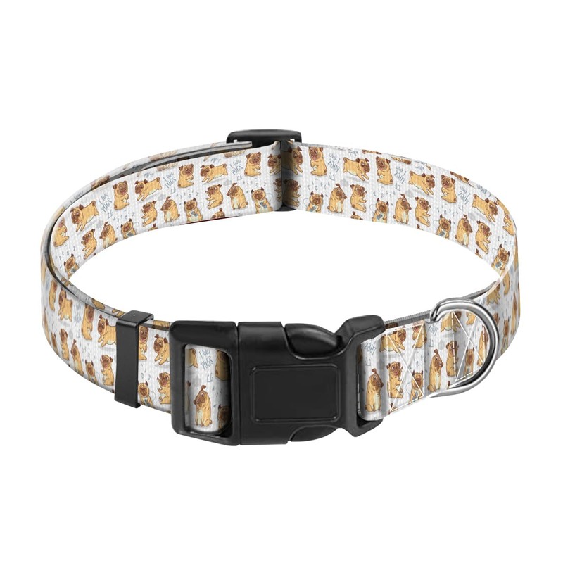 JYCardPKT Dog Collar, Adjustable Funny Pet Collar with Quick Release Durable Buckle, Cute Collars for Medium Large Dogs, Cute Pug Pattern